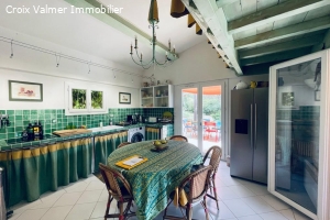 Cuisine équipée avec sortie sur véranda et jardin.
