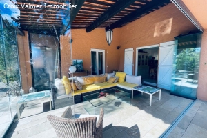 DescriptionPRODUIT RARE ET D'EXCEPTION - Grand mas de 5 pièces de 116 m² dont 21 m² de véranda avec parking privatif. Dans résidence fermée par portail automatique avec piscine et tennis, proximité immédiate de la plage de Gigaro.